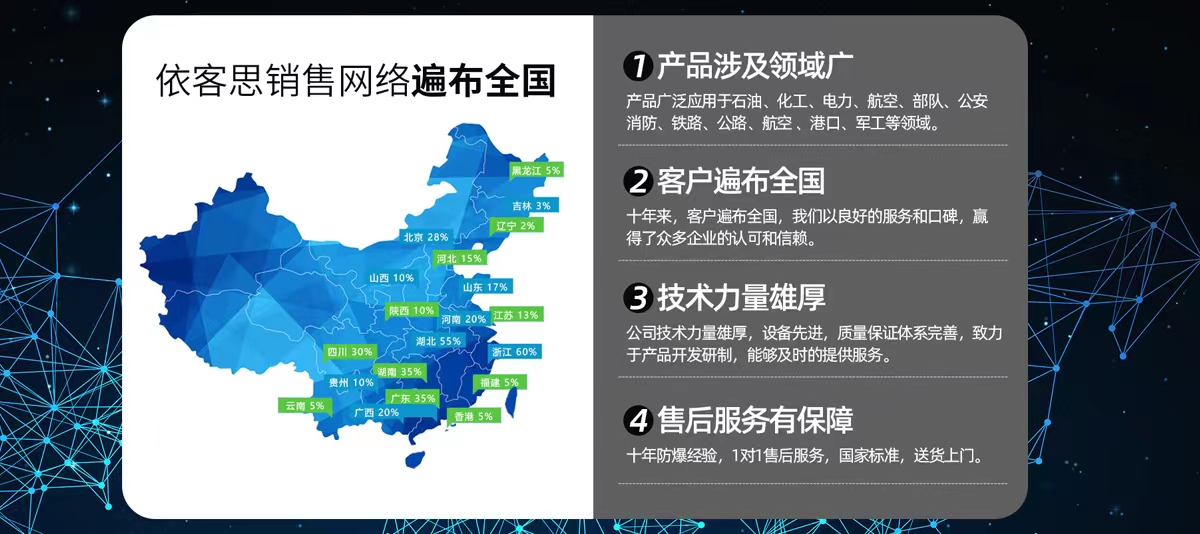 依客思防爆專注于防爆產(chǎn)品的研發(fā)、生產(chǎn)與銷售,主要產(chǎn)品有:防爆操作柱、BXCQ防爆靜電釋放儀、BZC系列防爆操作柱、不銹鋼現(xiàn)場(chǎng)操作箱、BXM(D)防爆照明(動(dòng)力)配電箱、BXX防爆檢修箱、BXJ防爆接線箱、LED防爆燈、防爆管件、防爆風(fēng)機(jī)等產(chǎn)品,型號(hào)規(guī)格齊全,廣泛適用于煤炭、電力、醫(yī)藥、石油、化工、航空等領(lǐng)域。我公司產(chǎn)品質(zhì)量過硬,價(jià)格實(shí)惠,銷售范圍廣,且與各大型企業(yè)建立了良好的合作關(guān)系,同時(shí)還遠(yuǎn)銷中、東亞和北美等地區(qū),深受用戶喜愛與青睞。如有需要請(qǐng)留意,稍后將有客服與您聯(lián)系